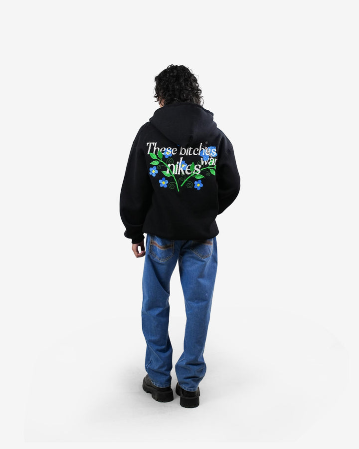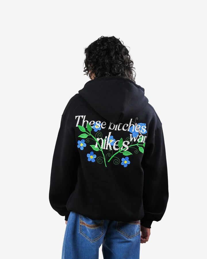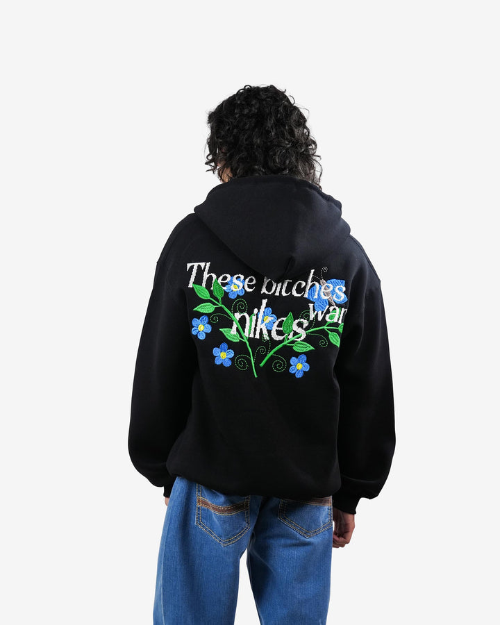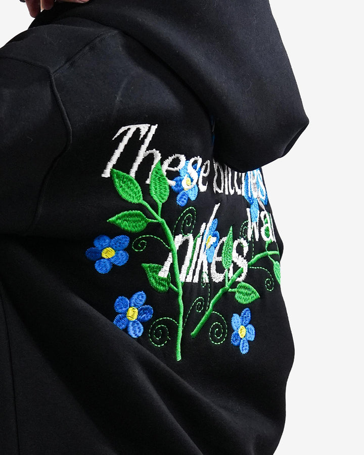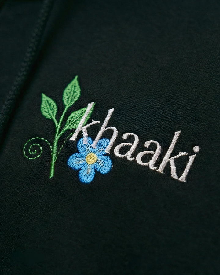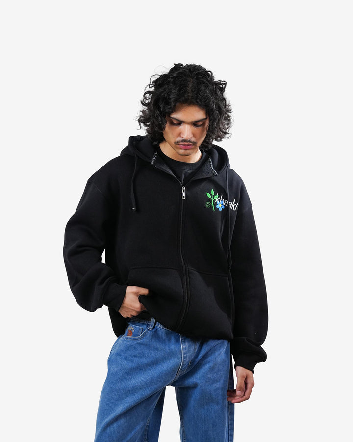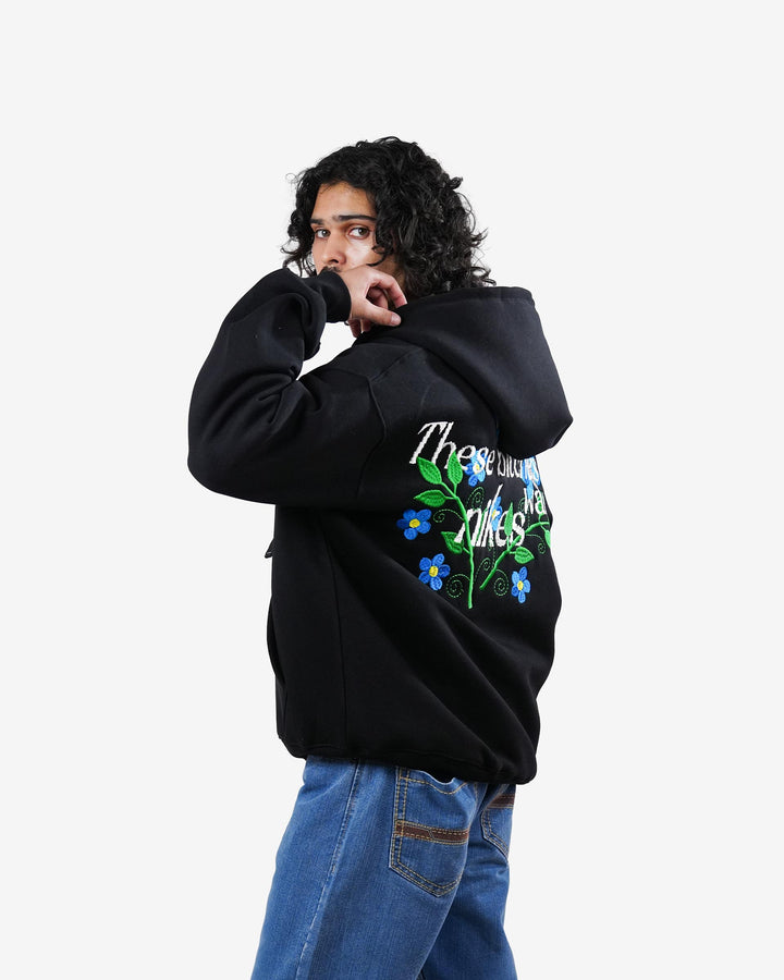 Designed as an oversized hooded zip-up, it features intricate 3,00,000+ stitch embroidery and front–back embellishments that create rich texture and strong visual impact. Finished with durable 2x1 ribbing, this hoodie is built as a true statement piece.