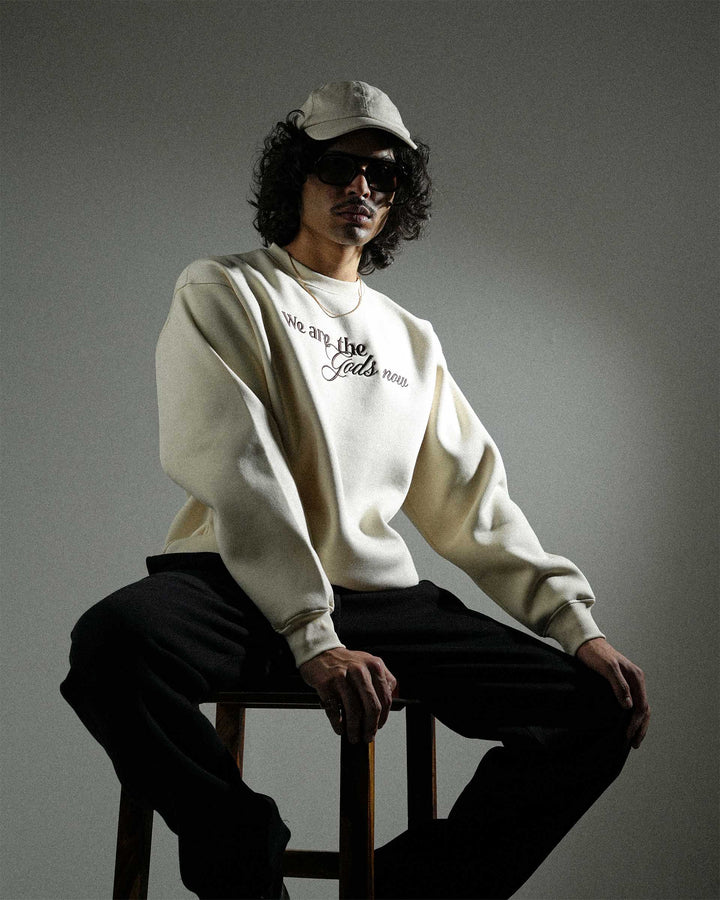 Designed in an oversized silhouette, it features intricate 3,00,000+ stitch embroidery with detailed front and back embellishments, creating depth, dimension, and a striking visual presence. Finished with durable 2x1 ribbing, this sweatshirt blends premium craftsmanship with everyday comfort.