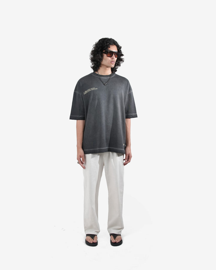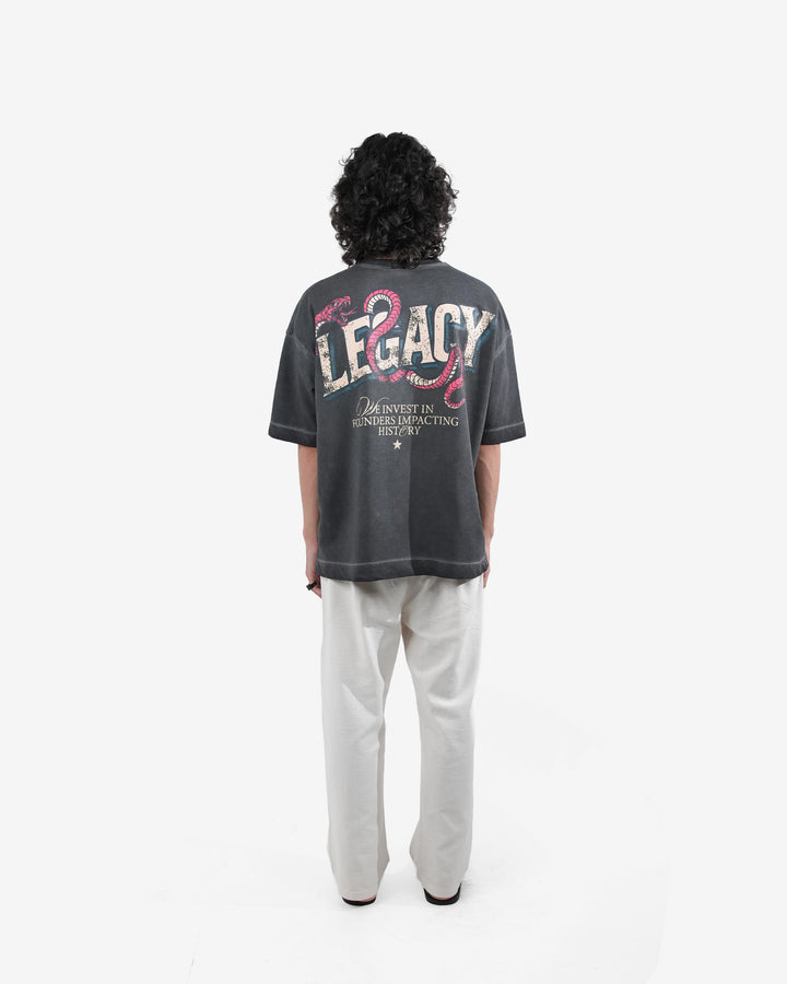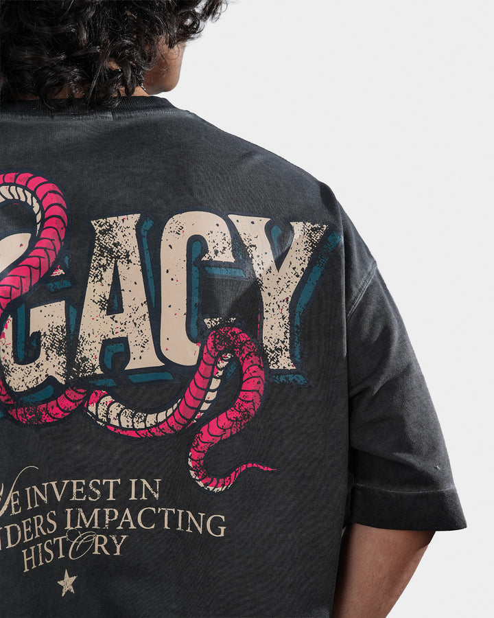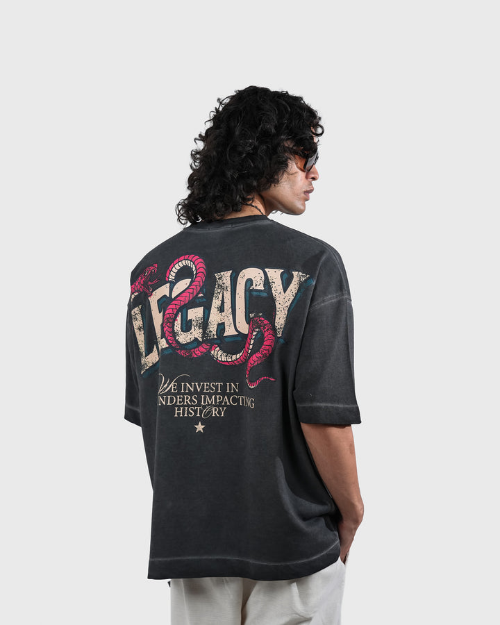 Legacy- Black Pigment Washed Oversized Printed T-shirt