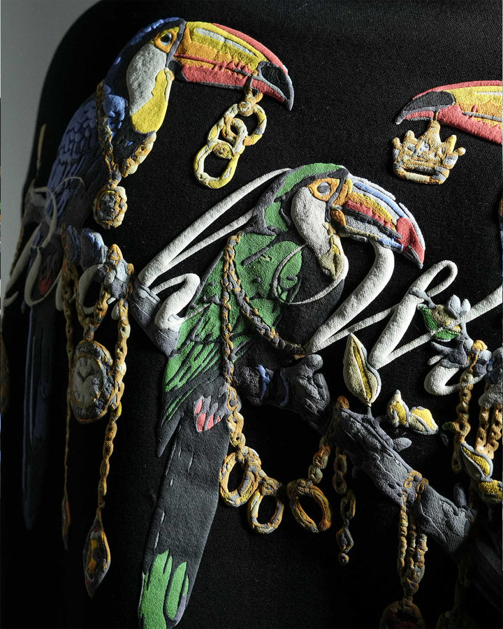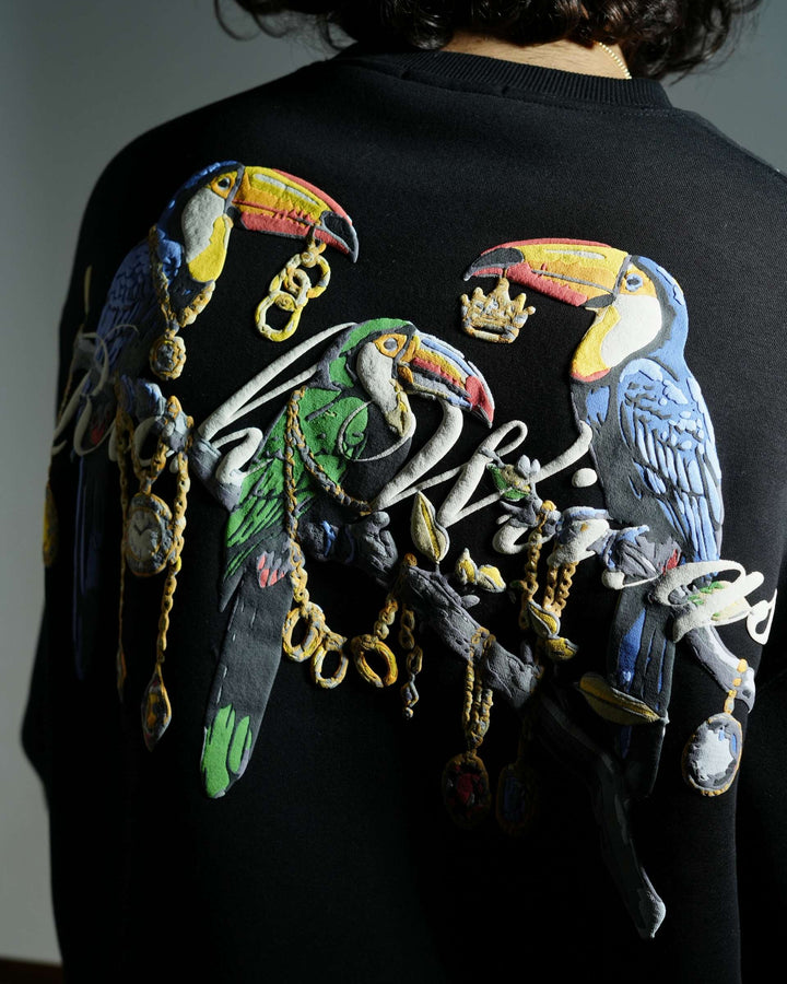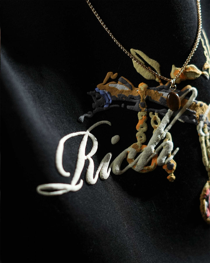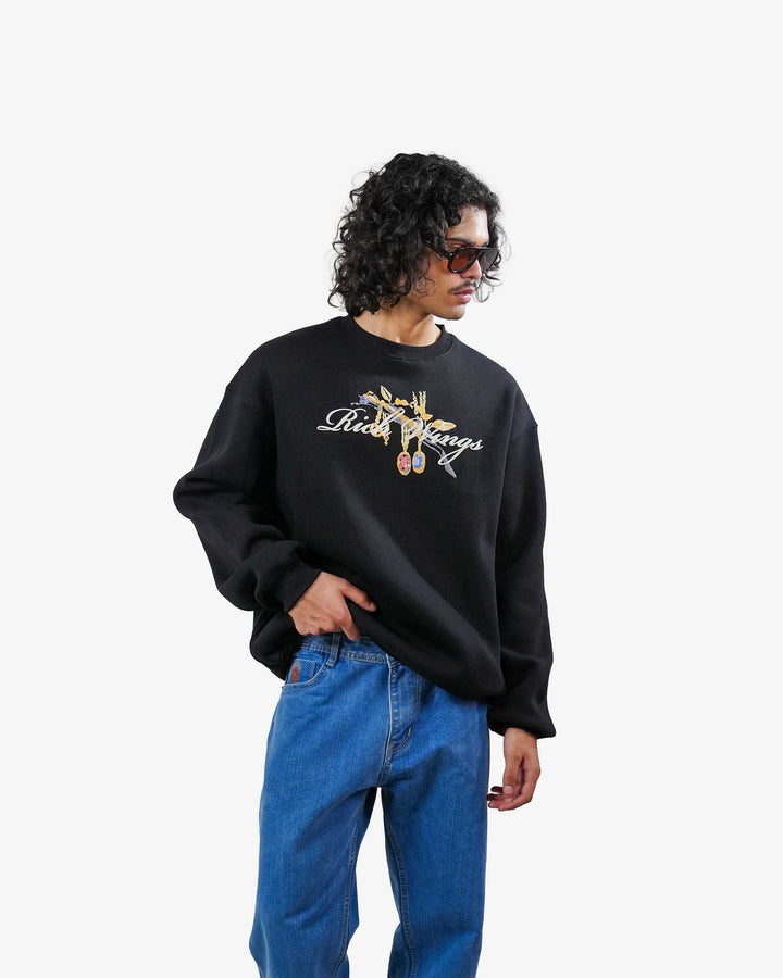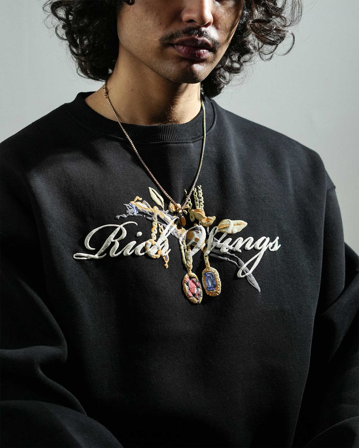 The Rich Wings Sweatshirt is crafted from luxurious 450 GSM Cotton 3-Thread Lycra Fleece, giving it a heavyweight, structured feel with comfortable stretch. The double silicone finish ensures a smooth, soft, elevated surface.
