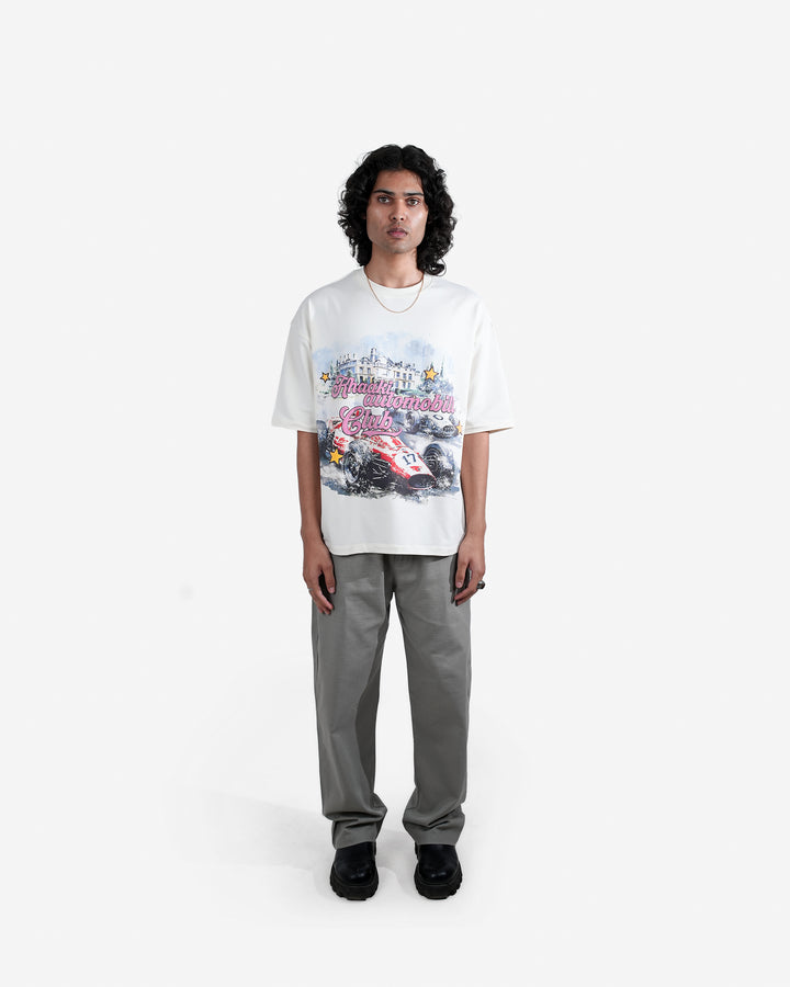Drawing from the golden age of motorsport, the Automobili Club Tee embodies the adrenaline and elegance of classic racing culture. Its bold retro artwork, enhanced by a pigment-washed, vintage finish, channels the raw thrill of the track while carrying the sophistication of timeless streetwear. More than a graphic tee, it’s a statement piece that celebrates speed, heritage, and style in perfect balance.