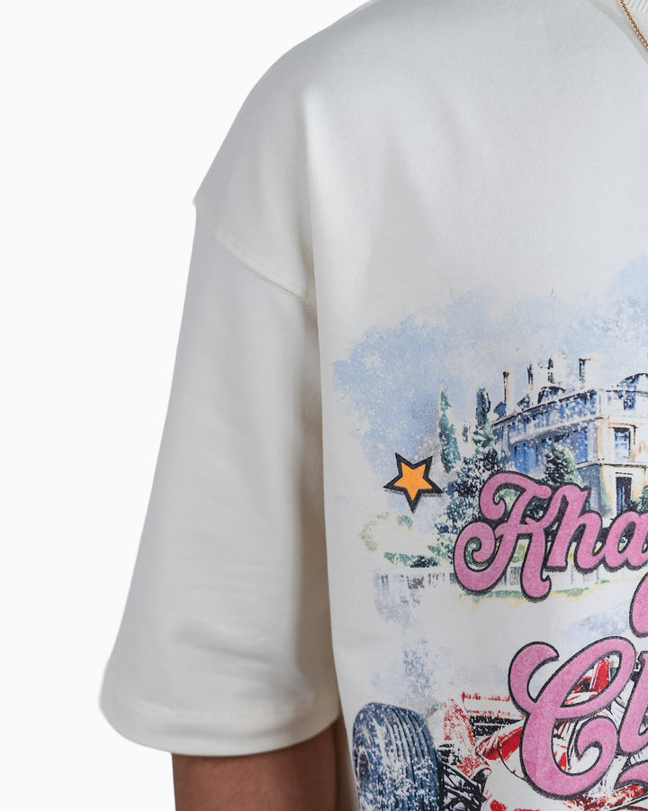 The Automobili Club - Off-White Flock Printed Oversized T-shirt