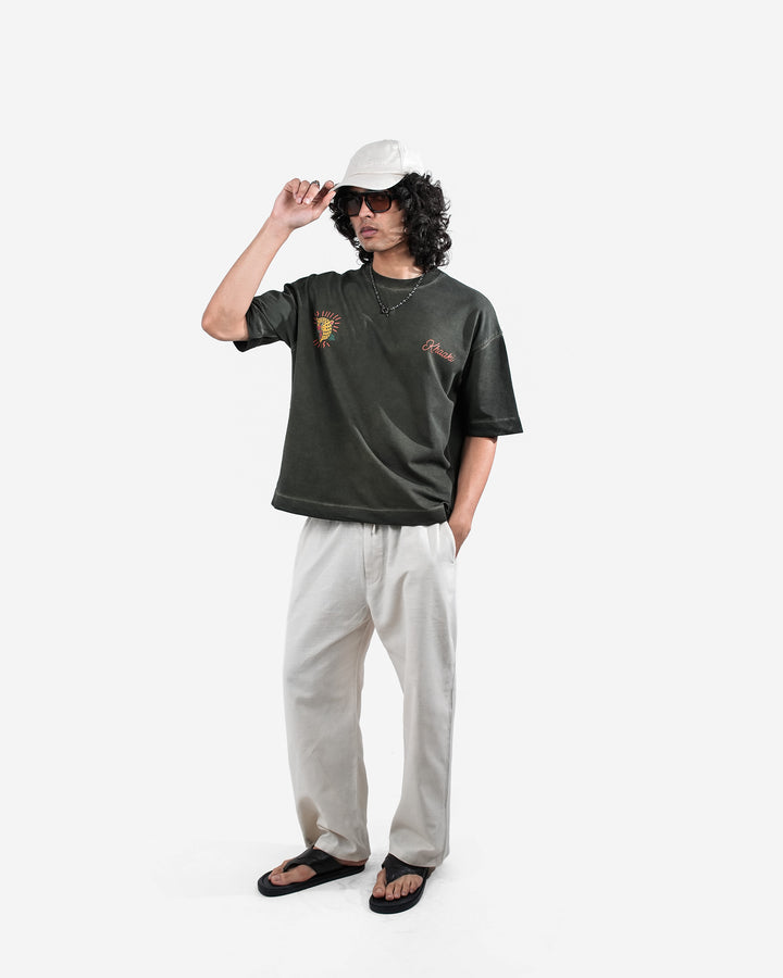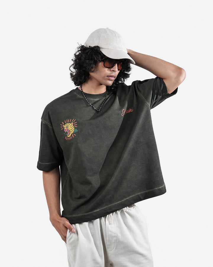 Wild Realm - Olive Pigment Washed Oversized T-shirt