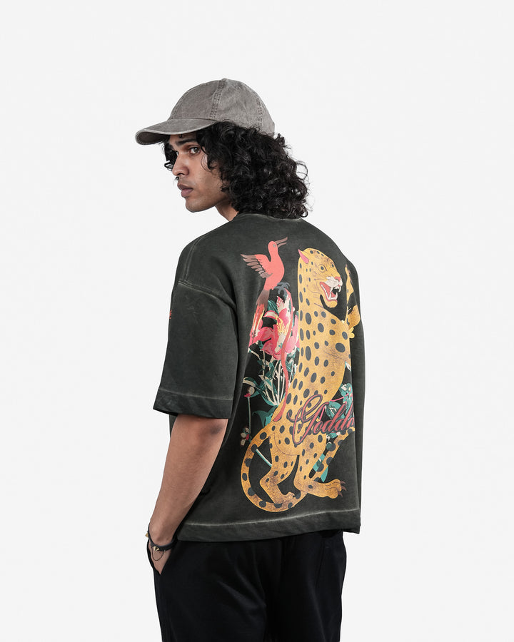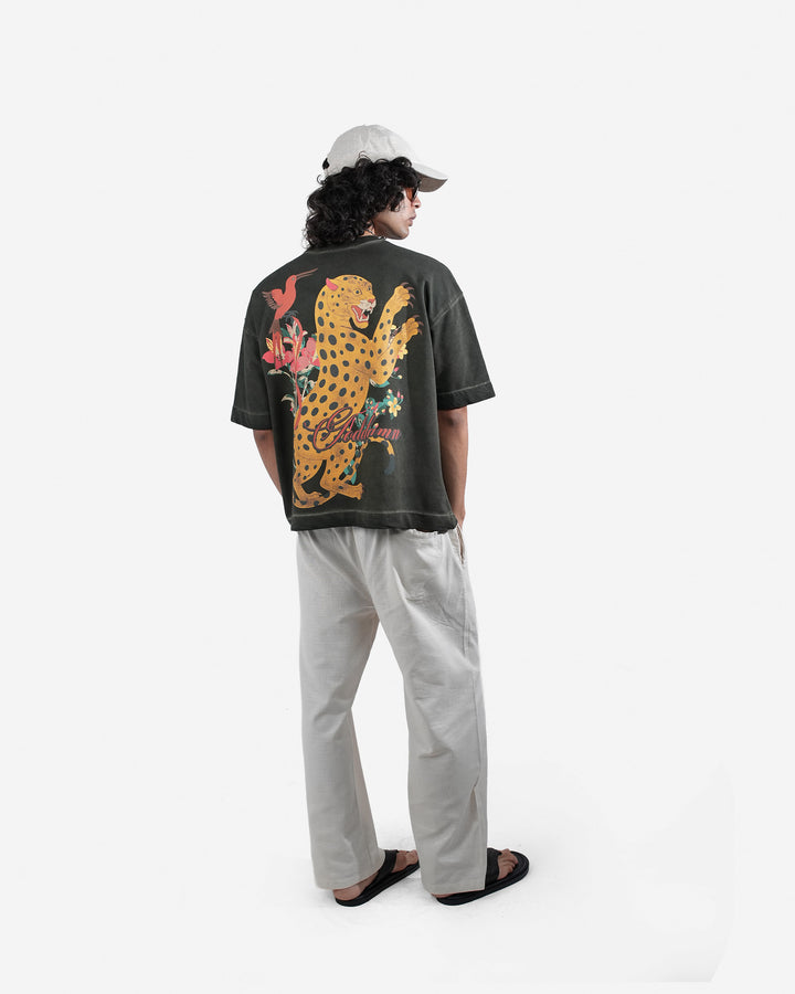 The Wild Realm Tee showcases asian artistry, weaving the vintage lived in look with the oil painted artwork to create a piece that feels both powerful and refined. Executed with a specialised screen printing technique, the graphic carries an oil-painted, gallery-worthy aesthetic—rich in depth, texture, and painterly detail.